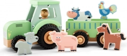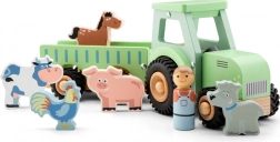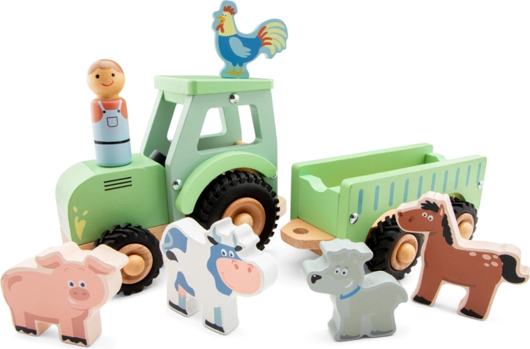 Acest tractor din lemn de calitate, cu platformă și set de animăluțe, le oferă copiilor experiențe autentice de la țară. Datorită roților funcționale și remorcii detașabile, micii fermieri pot transporta cu ușurință animalele și pot crea propriile povești din viața la fermă.