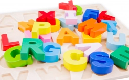 Descoperiți un puzzle din lemn cu alfabetul, distractiv, pentru copii de la 2 ani. Literele colorate sunt adaptate pentru mâini mici, astfel încât sunt ușor de manevrat. Jucăria susține dezvoltarea motricității fine, coordonarea mână–ochi și învățarea naturală prin joc. Dimensiuni: 300 × 300 × 8 mm.