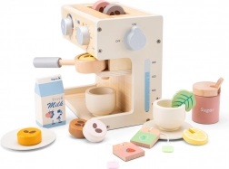 Setul include o gamă variată de accesorii: 6 capsule de cafea în culori diferite, 2 plicuri de ceai, o frunză de mentă, o felie de lămâie, o zaharniță, un ulcior pentru lapte și două cești cu farfuriuțe. În timpul jocului, copiii își dezvoltă nu doar motricitatea fină, ci și creativitatea și capacitatea de comunicare. Jocul cu espressorul este o ocazie ideală pentru exersarea coordonării mână-ochi și pentru jocuri de rol pline de imaginație.