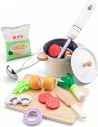 Aveți acasă un mic iubitor de supe, care adoră să se joace de-a gătitul și are multă imaginație? Atunci setul pentru prepararea propriei supe este jucăria perfectă pentru micii bucătari. Acest set conține tot ce este necesar pentru a pregăti o supă delicioasă – de la bază/stock, ceapă roșie, morcov, praz, roșii până la ciuperci. Lăsați copilul să amestece și să creeze propriile rețete speciale, dezvoltându-și creativitatea și motricitatea fină.