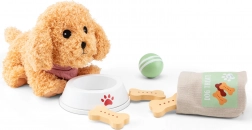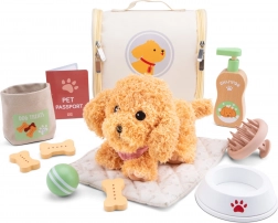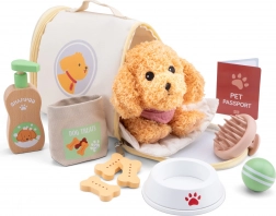 Include tot ce este necesar pentru îngrijirea câinelui de pluș. Detalii precum transportorul, peria sau recompensele atrag copii în joc și îi învață responsabilitatea.