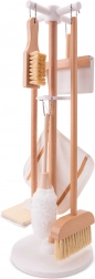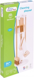 Setul include mop, mătură, pămătuf, cârpă de curățat, făraș și periă de mână. Copiii se pot juca și învăța cu toate uneltele, la fel ca adulții.