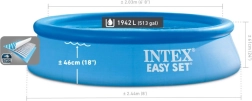 Setul include pompă de filtrare (1.250 l/h), care menține apa curată și limpede. Este suficient să alegi o suprafață plană, să umfli inelul superior și să umpli cu apă – construcția își ia singură forma. Calitatea certificată Intex garantează fiabilitate și durată de viață îndelungată.