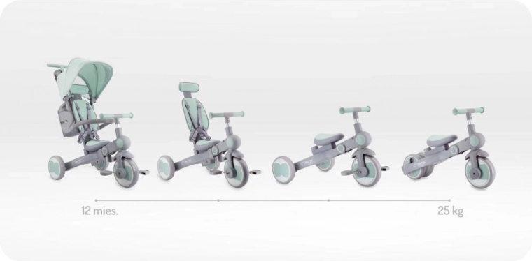 Tricicletă pentru copii 3‑în‑1 cu scaun rotativ și copertină TINY BIKE – Rotativ