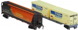 În pachet se găsesc 4 vagoane, piese de macaz și copăcei pentru completarea decorului. Copiii își exersează astfel motricitatea fină, gândirea logică și creativitatea în construirea diferitelor combinații de trasee. Ambalajul colorat de cadou îl face o idee excelentă de dar.