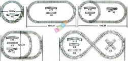 Asamblează diverse forme de circuite și folosește macazurile pentru a crea lungimi și ramificații după imaginația copilului.