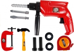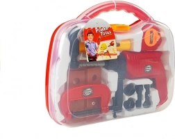 Setul de unelte pentru copii într-o geantă practică le oferă celor mici un joc realist de mic reparator. Conține o bormașină cu bit rotativ, ciocan, menghină, ruletă și alte accesorii. Jocul susține creativitatea, motricitatea fină și gândirea logică. Material plastic ușor și sigur și dimensiuni ergonomice pentru mâinile copiilor. Potrivit de la 3 ani, conform CE.