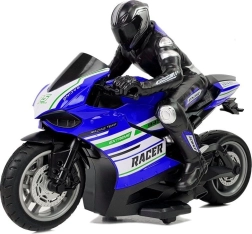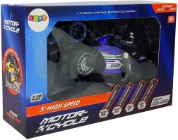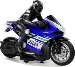 Această motocicletă RC albastră oferă distracție grozavă atât copiilor, cât și adulților. Datorită tehnologiei 2,4 GHz poți concura cu mai mulți piloți fără interferențe reciproce. Controlul este intuitiv – mers înainte, înapoi și virare – iar telecomanda ergonomică tip pistol stă perfect în mână.