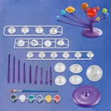 Creează-ți un mic planetariu chiar în cameră. Setul conține tot ce este necesar, inclusiv vopsele și pensulă, pentru a picta planetele albe după propria imaginație. După asamblarea modelului și poziționarea planetelor, este suficient să stingi lumina și să admiri funcțiile suplimentare ale setului. Include un Soare luminos, care pune planetele în mișcare, iar datorită orificiului din disc poți proiecta imagini cu planetele pe perete.