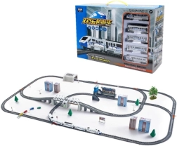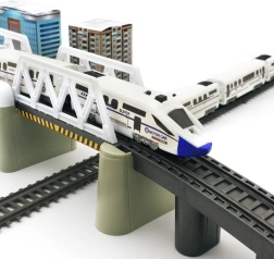 Setul include mai multe segmente de șine, care pot fi combinate și ajustate liber pentru a crea trasee complexe și variate. Elementul deosebit este posibilitatea de a construi un pod mobil funcțional, care adaugă un plus de realism jocului. Podul poate fi ridicat prin apăsarea unui buton, permițând trecerea trenurilor și adăugând întregului set un element interactiv. Datorită acestei funcții, copiii pot vedea singuri cum funcționează un pod mobil, ceea ce este atât educativ, cât și distractiv.
