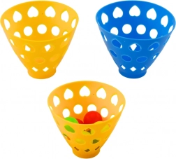 Coșulețele și mingile sunt fabricate din plastic robust și ușor. Culorile vii invită la joacă, iar materialul se curăță ușor – ideal pentru grădină, parc și camera copilului.