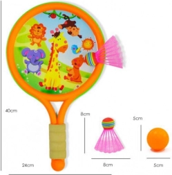 .Rachetele de badminton în culorile verde și portocaliu dau viață jocului, în timp ce motivul cu dinozauri le conferă un caracter prietenos, care cu siguranță va atrage atenția celor mici.