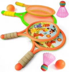 Setul include nu doar rachete, ci și o minge și săgeți, permițând diferite forme de joc și antrenament. Copiii pot experimenta diverse tehnici de joc și își pot îmbunătăți abilitățile în ritmul jocului.