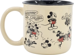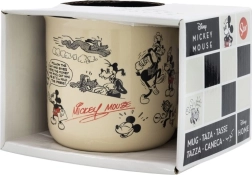 Cană decorată cu ilustrații ale clasicului Mickey Mouse în stil de bandă desenată, care aduc nostalgie și farmecul personajelor Disney.