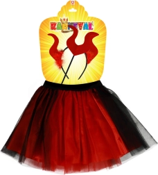 - Fustă tutu roșu-negru cu lungimea de 30 cm, ideală pentru mișcare confortabilă.