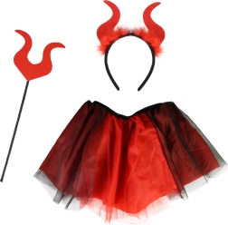 Îmbogățește garderoba micii tale diavolițe cu acest costum magic, ideal pentru Halloween, baluri mascate sau petreceri tematice. Acest set perfect asortat conține: