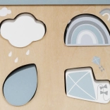 - Set de forme: Include diverse forme și culori pe care copilul le poate introduce în orificiile corespunzătoare, contribuind la recunoașterea formelor și coordonarea vizual-motorie.