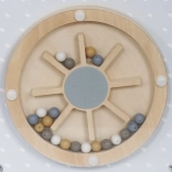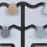 - Partea de sus: Conține piste cu bile pe bucle de sârmă care ajută copilul să exerseze mișcările precise ale mâinilor și concentrarea.
