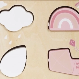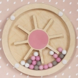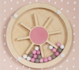 - Construcția din lemn: Solidă și estetică, realizată din materiale sigure, vopsită în culori pastel discrete, care conferă jucăriei un aspect elegant și prietenos pentru copil.