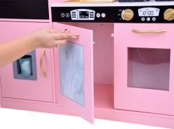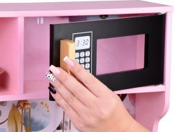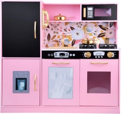 Această bucătărie din lemn pentru copii, elegantă, este visul oricărui mic bucătar. Este realizată cu detalii pentru un aspect real și nu este doar estetic plăcută, dar și complet funcțională pentru un joc realist. Jucăria este ideală pentru copiii care iubesc să imite adulții și doresc să se simtă ca într-o bucătărie reală.