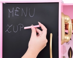Frigiderul include o tablă neagră pentru scris cu cretă, ideală pentru liste de cumpărături sau rețete. Include, de asemenea, un producător de gheață pentru un joc realist.
