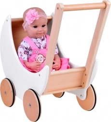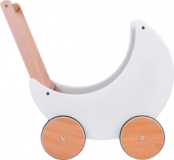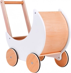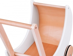 Cărucior drăguț din lemn pentru păpuși este realizat din lemn natural, care este sigur pentru copii. Mânerul ergonomic este adaptat mâinilor mici, susținând dezvoltarea echilibrului. Roțile din cauciuc protejează podeaua de zgârieturi și asigură o funcționare silențioasă.