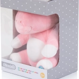Liniștește bebelușul cu o lumină blândă și melodii, datorită acestui companion moale pentru pătuț. Jucăria oferă 3 cântece de leagăn, veioză de noapte cu lumină multicoloră și prindere ușoară cu scai pentru pătuț, cărucior sau țarc. Fabricată din pluș moale de înaltă calitate și livrată în ambalaj de cadou.
