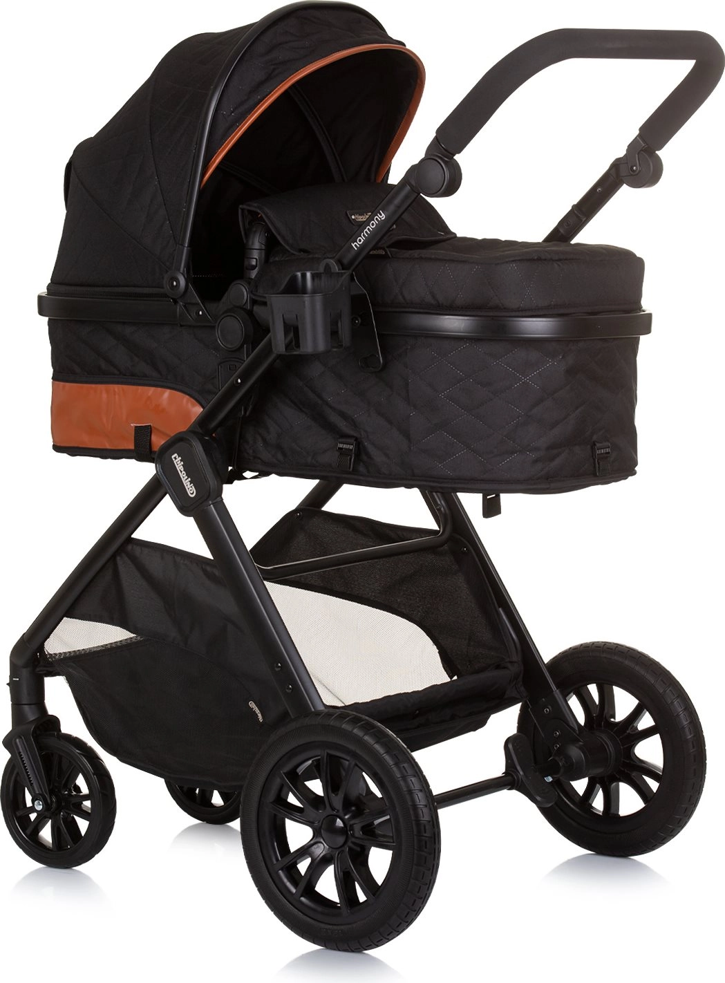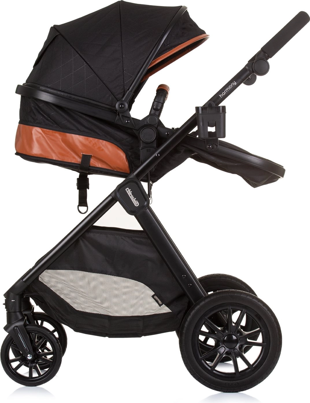 Cărucior elegant și practic pentru părinții moderni: Chipolino Harmony 2 în 1 combină landoul și scaunul sport într-o singură unitate. Oferă cadru ușor și rezistent, roți din cauciuc cu suspensie și posibilitate de blocare, scaun reversibil, cu fața sau cu spatele la direcția de mers, capotină reglabilă cu parasolar și echipare bogată ce include husă pentru picioare, geantă și suport pentru băuturi.