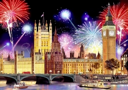 Partea frontală oferă un motiv colorat al Londrei nocturne cu artificii, iar verso-ul un model repetitiv pentru asamblare după formă. Ideal pentru antrenarea concentrării și a imaginației spațiale.