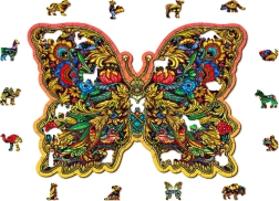 Acest puzzle colorat din lemn în formă de fluture oferă atât distracție, cât și relaxare. Fiecare piesă este tăiată cu laser cu precizie, ceea ce garantează margini netede și modele detaliate. Multe piese au forma unor animale, care pot fi folosite și ca mici figurine independente.