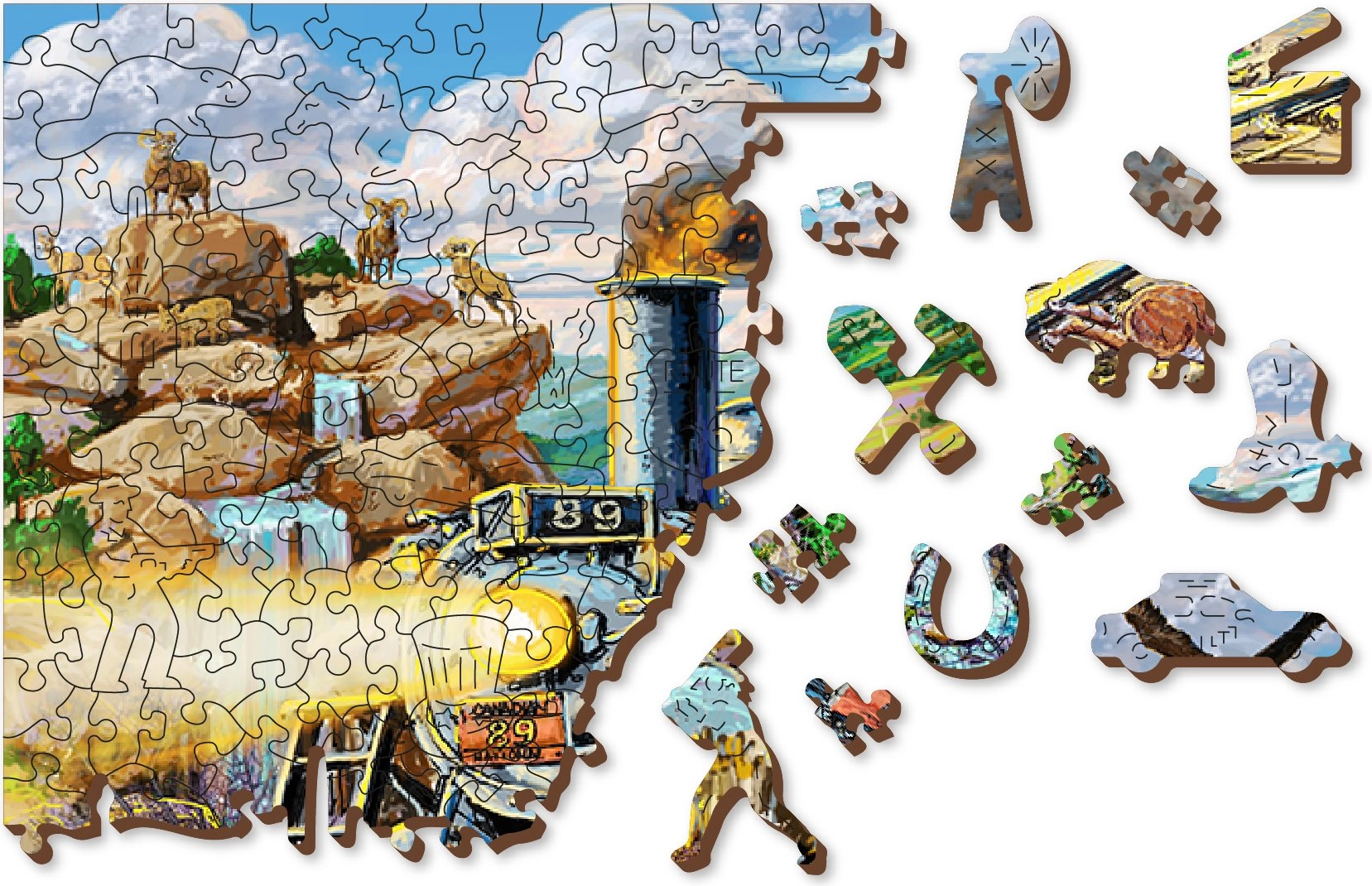 Puzzle-ul din lemn WOODEN CITY, decupat cu laser și cu piese special modelate, este incredibil de distractiv. O parte dintre piese au forme de animale, clădiri sau obiecte, ale căror detalii evidențiate cu laser amplifică efectul final. Aceste piese pot sta singure ca mici figurine. Asamblarea unui puzzle cu piese de forme variate este mai dificilă și reprezintă o provocare mai mare decât asamblarea unui puzzle clasic. În plus, puzzle-ul este dublu-față: îl puteți asambla fie după imagine (fața), fie după formă (spatele cu model). Brandul WOODEN CITY, pe lângă conceptul unic de puzzle, nu uită de ecologie: la aceste produse nu veți găsi ambalaje din plastic.