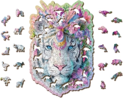 Puzzle-ul din lemn WOODEN CITY Tigrul mistic este o piesă de colecție superbă și un cadou grozav pentru iubitorii de puzzle-uri originale. Prelucrarea laser de înaltă precizie evidențiază detaliile motivului și asigură margini netede și sigure, fără așchii. O parte dintre piese au forma unor animale, clădiri și obiecte recognoscibile, care pot fi așezate și separat ca mici figurine.