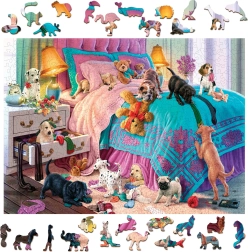 Puzzle-ul din lemn WOODEN CITY Căţei năzdrăvani aduce distracție pentru copii și adulți. Formele originale ale pieselor în siluete de animale, clădiri și obiecte oferă o nouă dimensiune asamblării, iar unele piese pot fi folosite chiar ca mici figurine independente. Datorită detaliilor evidențiate cu laser ies în evidență atât motivul, cât și calitatea execuției.