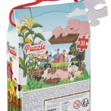 Puzzle drăguț pentru copii cu tematică de fermă oferă distracție și antrenament al motricității fine. Conține 30 de piese mari, iar după asamblare rezultă o imagine de 29 × 18 cm. Livrat într-o cutie cadou frumoasă, cu mâner – ideală pentru călătorii și ca dar.