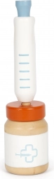 Seringă din lemn cu mecanism cu arc, cutie pentru medicamente și alte instrumente care susțin un joc autentic de îngrijire a animalului de companie.