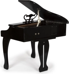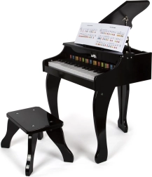 Eleganta pianină cu aripă pentru copii SMALL FOOT din lemn de calitate aduce copiilor bucuria muzicii. Are un design luxos, calitate excelentă a sunetului și un capac rabatabil ca la o aripă adevărată. Sunt incluse o tăbliță, un suport pentru partituri și un cântecier cu note și clape marcate în culori pentru învățare ușoară. Se alimentează cu 4× baterii AA (nu sunt incluse).
