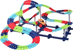 Construiți pentru copii propria lume a curselor: un set de pistă auto lung, flexibil și răsucit cu până la 291 de piese, care permite crearea de bucle trăznite, poduri și dealuri. Pista ajunge până la 580 cm, este formată din piese colorate și, datorită ventuzelor, poate fi fixată și pe pereți sau ferestre netede pentru construcții cu adevărat extreme. Include o mașinuță motorizată cu lumini, benzi din cauciuc pe roți pentru o aderență mai bună și acumulator reîncărcabil cu cablu USB.