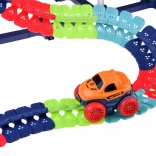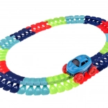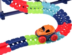 Această pistă auto colorată stimulează imaginația, motricitatea fină și răbdarea. Datorită îmbinărilor flexibile, puteți modela, îndoi și modifica pista după bunul plac – de la sprinturi scurte la parcuri grandioase pline de distracție. Mașinuța cu LED-uri pornește singură după pornire și face față chiar și virajelor mai strânse.