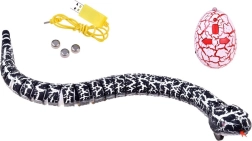 Un șarpe telecomandat distractiv și realist, cu telecomandă în formă de ou, oferă ore de distracție interactivă. Datorită încărcării prin USB, controlului simplu și mişcării realiste, este ideal pentru copii și adulți. Viteză mare, limbă extensibilă și aspect fidel asigură jocuri spectaculoase și farse amuzante.