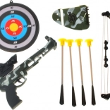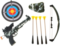 - Arbaletă, țintă, 4 săgeți cu ventuze, toc pentru săgeți