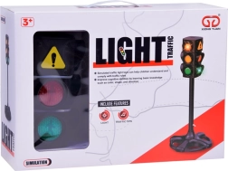 Semnalizare rutieră luminoasă cu 3 lumini în culorile roșu, portocaliu și verde, cu efect de iluminare. Va fi un atribut indispensabil pentru predarea regulilor de circulație, învățarea deplasării pe drum, traversarea trecerilor pentru pietoni.