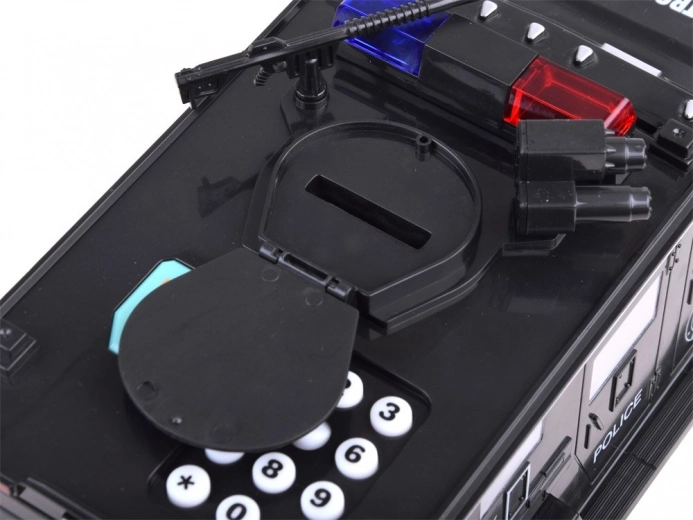 Pușculiță pentru copii cu parolă și amprentă – mașină de poliție – Neagră