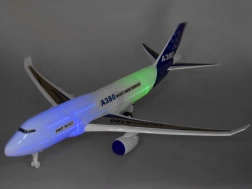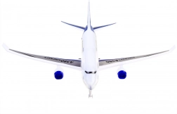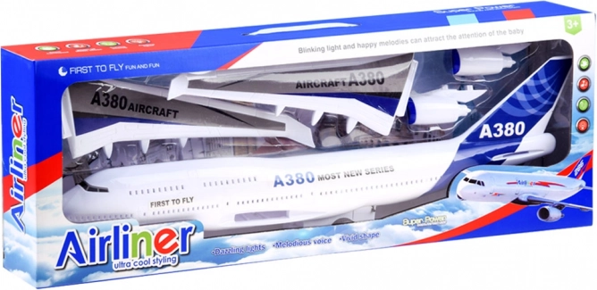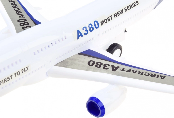 Avionul este realizat din plastic de înaltă calitate, cu atenție la detalii. Fuselajul, aripile și suprafețele de coadă sunt decorate cu autocolante colorate. Vehiculul este echipat cu propulsie, datorită căreia poate „funcționa” pe aeroport și poate fi folosit pe pistă. Comutatorul este amplasat în trenul de aterizare și activează efectele sonore și luminoase ale jucăriei. La pornire vom auzi sunetele de start, rulare/aterizare și funcționarea motoarelor. Sunetele sunt însoțite de clipirea luminilor în interiorul cabinei.