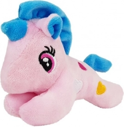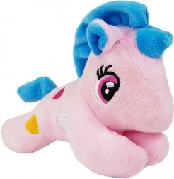 Unicornul este moale și potrivit pentru îmbrățișări, cu inimioare colorate pe laterale.