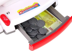 Datorită calculatorului funcțional și sertarului deschis cu bani, casa de marcat amintește de o casă reală în timpul jocului de a face comerț.