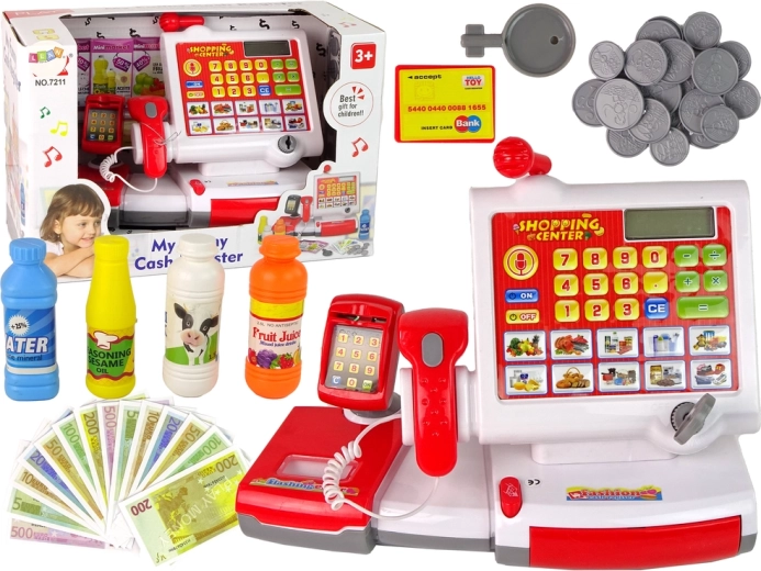 Cu casa de marcat, copiii pot asuma diferite roluri și își pot îmbunătăți comunicarea și negocierea. Include un calculator, cititor de coduri și multe alte accesorii.