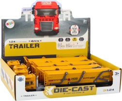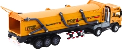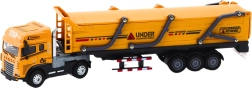 Camionul cu remorcă galbenă este o jucărie realistă destinată micilor entuziaști ai vehiculelor de marfă. Modelul este realizat la o scară de 1:24 și, datorită detaliilor sale, seamănă cu un camion de construcții real. Camionul este echipat cu un mecanism de tragere, astfel încât să se poată deplasa ușor înainte sau înapoi prin forța proprie. La apăsarea cabinei, se activează efectele luminoase și sonore care adaugă autenticitate și distracție în timpul jocului.