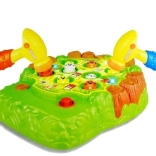 Setul de joc conține o placă din plastic verde-maro cu capete de animale colorate și două ciocane, permițând jocul a doi jucători simultan. Grafica colorată cu animale și plante de pe placă atrage orice copil, care nu se va plictisi niciodată de acest joc. Copiii nu doar că se vor distra, dar își vor însuși și abilități noi precum recunoașterea culorilor și sunetelor.