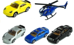 Setul include patru mașinuțe colorate diferit și un elicopter albastru, oferind numeroase opțiuni dramatice de joacă. Elicopterul are o elice mobilă, adăugând interactivitate.