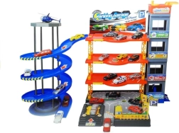 Acest garaj modern și colorat cu mai multe nivele este proiectat pentru a oferi distracție de lungă durată copiilor. Cu mașini de stațiune în diverse culori și un elicopter, copilul dvs. poate juca diverse scenarii, de la parcare la plimbări palpitante pe rampa spiralată.